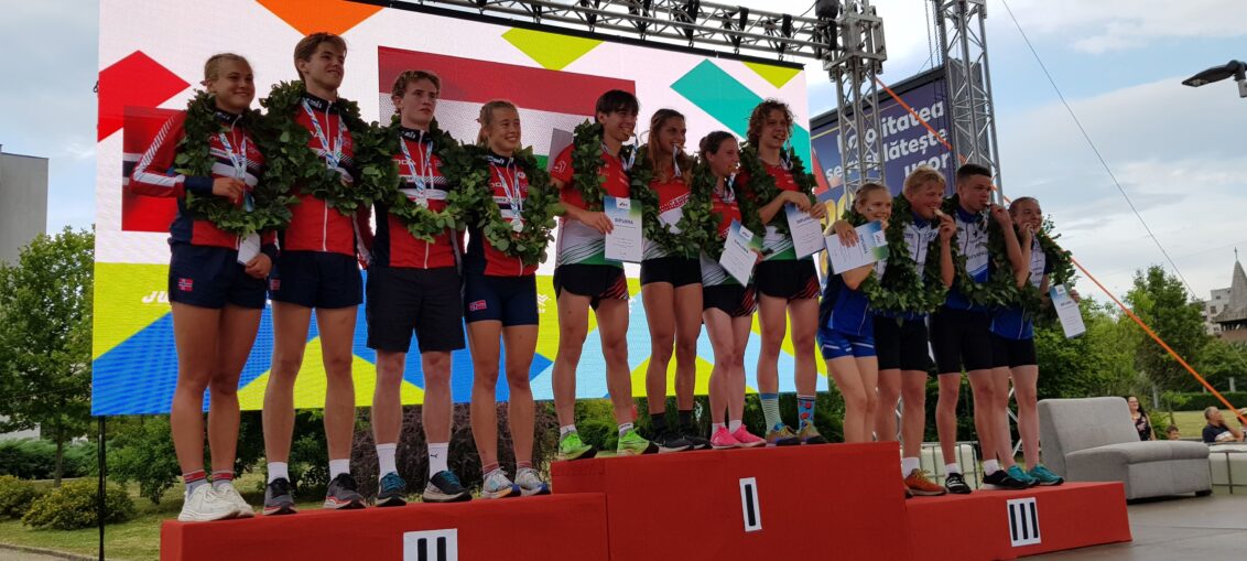 ORIENTARE Ungaria obține aurul în proba de ștafetă mixtă Alte sporturi by Ioan R. Ster - 5 iulie 20230 Alin Bo'ioc Ungaria obține aurul în proba de ștafetă mixtă Campionatul Mondial de Orientare pentru Tineret 2023 – JWOC 2023 (Junior World Orienteering Championships) a continuat în cea de-a doua zi cu proba de Ștafetă Mixtă, traseul stabilit de organizatori incluzând zona Parcului Municipal Baia Mare – Parcul Mara respectiv zona de finish pe Bulevardul Unirii (în proximitatea Camerei de Comerț și Industrie Maramureș). Pe o vreme toridă cu 28 de grade și o umiditate de 56 %, reprezentanții celor 41 de națiuni au avut de străbătut un traseu de 3,5 km, un total de 30 de posturi de control. La finalul